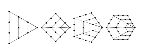 La méthode pour passer d'un polygone au suivant consiste à prolonger d'un seul point chacun des deux côtés adjacents à un seul sommet, puis à compléter la figure par des points pour obtenir les côtés supplémentaires manquants. Dans les diagrammes ci-dessous, chaque couche supplémentaire est représentée par des points rouges. Pour tout entier k ≥ 3, par convention, posons Pk,0 = 0 ; pour tout entier n ≥ 1, le nombre de points rouges du n-ième k-gone, possédant points sur chaque arête, est égal à (points disposés aux sommets) plus (points disposés à l'intérieur des arêtes). Donc :