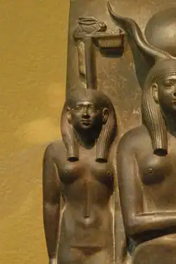 - ↑ "King Menkaura, the goddess Hathor, and the deified Hare nome", au Museum of Fine Arts, Boston.