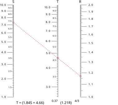 Un nomogramme de ce type permet de calculer, à partir de la température de couleur de deux sources, en kelvins, leur écart en mireds 1/K1-1/K2[8]. C'est aussi sur ce principe que se fonde le nomogramme de Fagan pour la lecture des tests médicaux.