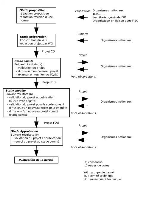 - ↑ Directives ISO/CEI - partie 1 : Procédures pour les travaux techniques § 2 : Élaboration des Normes internationale, cinquièmes éditions, 2004.
