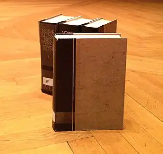 Quatre volumes de l'édition imprimée du Norsk Kunstnerleksikon.