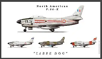 - F-86K - F-86D avec électronique simplifiée et 4 canons de 20 mm au lieu des roquettes, destiné à l'exportation