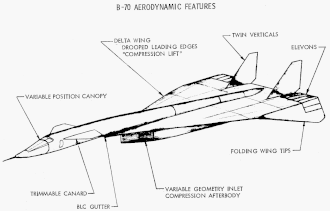 Le B-70, conçu pour voler à des vitesses encore plus élevées que le B-58, est soumis à des contraintes bien plus sévères. À haute altitude, le B-70 est quatre fois plus rapide que le B-52 mais à basse altitude, il est limité à Mach 0,95, ce qui est à peine mieux que ce dernier dans ce domaine de vol. De plus, sa charge de bombes est inférieure et son rayon d'action moindre[7]. Son seul avantage majeur est sa capacité à voler à très grande vitesse dans des zones non couvertes par les missiles, en particulier lors de la longue route des États-Unis vers l'URSS. Toutefois, cet intérêt est limité, puisque la principale raison du maintien d'une force de bombardiers à une époque où apparaissent les missiles balistiques est que les bombardiers peuvent rester en l'air très loin de leurs bases et, de plus, ils sont à l'abri lors d'attaques furtives[45]. Dans ce cas, le bombardier ne doit faire appel à sa grande vitesse que lors d'une courte période entre les zones de rassemblement et les côtes soviétiques.