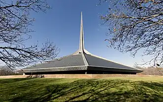 Le bâtiment est de forme hexagonale, avec une flèche centrale en métal qui culmine à 59 m[1]. Sous la flèche, il y a un oculus qui laisse entrer la lumière au niveau principal. Le sanctuaire est situé au centre du bâtiment, et la table de communion est située au centre du sanctuaire. Des rangées de bancs entourent l'autel dans un hexagone, reflétant l'idée que le culte doit être un aspect central de la vie de la congrégation. Le niveau inférieur contient des salles de classe, un auditorium, une cuisine et un espace d'activités.
