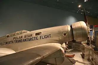 Le , Ellsworth et le pilote canadien Herbert Hollick-Kenyon tentèrent le premier vol transantarctique au Monde, partant de l'île Dundee, dans la Mer de Weddell, vers la base d'exploration de Little America. L'équipage effectua quatre arrêts pendant son voyage, au cours d'un vol qui représenta la première visite dans l'Histoire de l'Antarctique Ouest par des hommes. Lors d'un des arrêts, un blizzard recouvrit complètement le fuselage de neige, ce qui demanda une journée entière de nettoyage. Le , après avoir volé sur une distance de plus de 2 400 miles (3 865 km), l'avion tomba à court de carburant, à seulement 25 miles (40 km) de son objectif. L'intrépide équipage prit six jours à effectuer à la marche ce qu'il restait du voyage et s'installa dans le camp abandonné de Richard E. Byrd, pour être finalement retrouvés par le navire de recherches RRS Discovery II, le . Le Polar Star fut retrouvé plus tard et donné au National Air Museum[5].