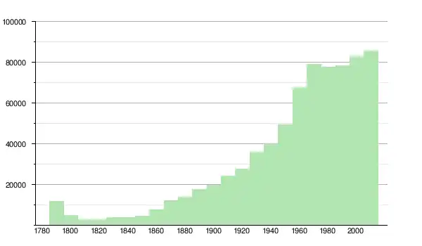 D'après le recensement de 2000, il y avait 82 951 habitants, 32 711 ménages, et 20 967 familles dans la ville. La densité de population était de 404,1 hab/km2. Il y avait 33 753 maisons avec une densité de 571,3 maisons/km2. La décomposition ethnique de la population était : 73,95 % blancs ; 15,27 % noirs ; 0,21 % amérindiens ; 3,25 % asiatiques ; 0,05 % natifs des îles du Pacifique ; 4,33 % des autres races ; 2,95 % de deux ou plus races. 15,63 % de la population était hispanique ou Latino de n'importe quelle race.
