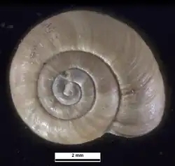 Notodiscus hookeri est une espèce d'escargots terrestres de petite taille, un mollusque gastéropode de la famille des Charopidae[3]. Cet escargot vit sur les îles de la région subantarctique. La particularité de sa coquille, unique parmi les escargots terrestres, est que la partie organique ne contient pas de chitine.