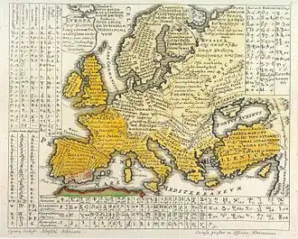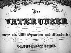 - ↑ Le Notre Père de Psalmanazar se présente ainsi : « Amy Pornio dan chin Ornio vicy, Gnayjorhe sai Lory, Eyfodere sai Bagalin, jorhe sai domion apo chin Ornio, kay chin Badi eyen, Amy khatsada nadakchion toye ant nadayi, kay Radonaye ant amy Sochin, apo ant radonern amy Sochiakhin, bagne ant kau chin malaboski, ali abinaye ant tuen Broskacy, kens sai vie Bagalin, kay Fary, kay Barhaniaan chinania sendabey. Amien. »