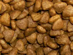 La nourriture sèche, communément appelée « croquette » ou granulé (8 à 10 % d’humidité), est généralement obtenue par extrusion de la viande à haute pression et haute température. Elle peut être complétée par d’autres ingrédients et recouverte de graisse pour en améliorer le goût[2]. La qualité nutritionnelle dépend principalement de la qualité des protéines animales utilisées, du type de sources azotées employées et de la technologie de fabrication[3].