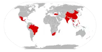 - Les BRICS : Brésil, Russie, Inde, Chine et l'Afrique du Sud.