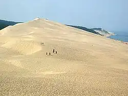 Depuis la presqu'île d'Arvert jusqu’aux côtes du Labourd, le littoral, quasi-rectiligne, est bordé de hautes dunes, qui culminent à la dune du Pilat, de grands lacs (lac d'Hourtin et de Carcans, étang de Lacanau, étang de Cazaux et de Sanguinet, étang de Biscarrosse et de Parentis, etc.) et de zones humides (réserve naturelle nationale des dunes et marais d'Hourtin) qui précèdent de vastes pinèdes plantées au XIXe siècle. La forêt des Landes, de loin la plus étendue, couvre près d’un million d’hectares[25] (dont près de 950 000 de pins maritimes[26]), ce qui en fait la plus vaste forêt artificielle d’Europe occidentale. Formant un vaste triangle partant de la pointe de Grave, au nord de Soulac-sur-Mer, jusqu’à Hossegor au sud, et Nérac à l'est, elle a remplacé les landes ingrates, sablonneuses et marécageuses qui ont caractérisé la région pendant des siècles. La forêt des Landes est partiellement comprise dans le parc naturel régional des Landes de Gascogne, qui commence au sud de Bordeaux.
