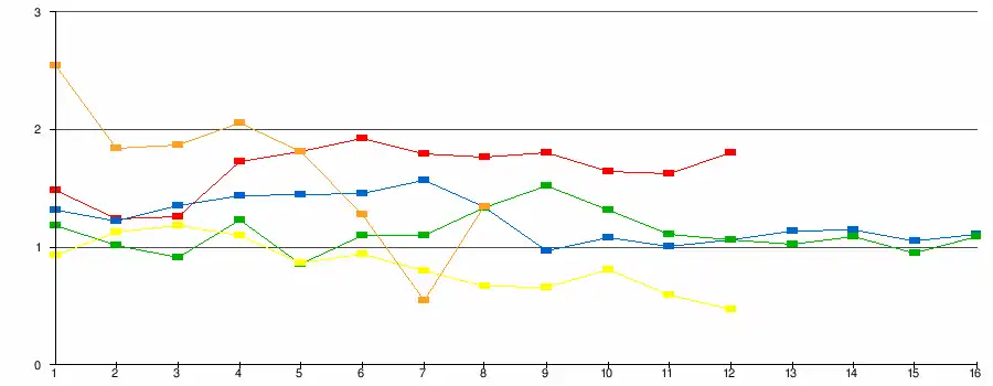 | Marco Prince | 8 | 3 800 000 | 14,7 % | 3 600 000 | 15,3 % | 3 352 000 | 14,4 % | [19] | |||||||