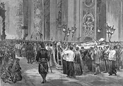 Lors des neuf jours des morts en l'honneur du Souverain pontife, l'Office des morts ainsi qu'une messe de requiem solennelle est donnée à Saint-Pierre-de-Rome et dans toutes les basiliques majeures et dans toutes les églises de la Ville éternelle[15].