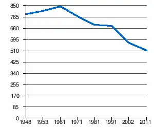 - 1 2 (sr + en) « Livre 20 : Vue d'ensemble comparative de la population en 1948, 1953, 1961, 1971, 1981, 1991, 2002 et 2011, données par localités) » [PDF], pages du recensement de 2011 en Serbie - Institut de statistique de la république de Serbie, (consulté le )
