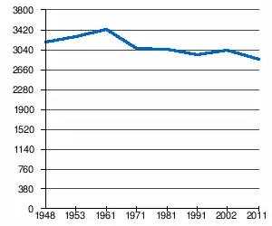 En 2011, l'âge moyen de la population était de 42,5 ans, 41,6 ans pour les hommes et 43,3 ans pour les femmes[6].