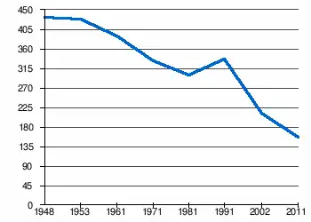 | 435 | 429 | 390 | 332 | 300 | 336 | 211[2] | 157[1] |