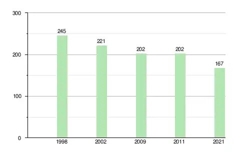 En 2021, le village de Nowawieś Pałucka comptait 167 habitants, en diminution de −31,84 % par rapport à 1998[6]. En 2021, 58,1 % des habitants du village de Nowawieś Pałucka sont en âge de travailler (entre 18 et 64 ans pour les hommes et 18 et 59 ans pour les femmes). 18,0 % des habitants ont moins de 18 ans et 24,0 % ont l'âge légal de la retraite. Les personnes en âge de travailler représentent 59,5 % de la population de la voïvodie de Couïavie-Poméranie et 59,5 % de la population de Pologne. Ainsi, le taux de dépendance démographique du village de Nowawieś Pałucka est équivalent à celui de la voïvodie de Couïavie-Poméranie et équivalent à celui de la Pologne[7].