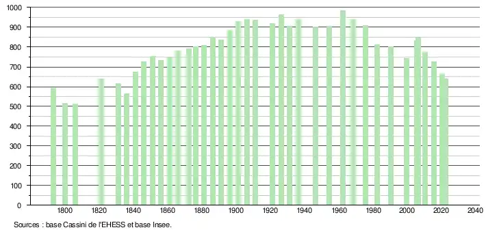 - ↑ Fiches Insee - Populations de référence de la commune pour les années 2006, 2007, 2008, 2009, 2010, 2011, 2012, 2013, 2014, 2015, 2016, 2017, 2018, 2019, 2020, 2021 et 2022.