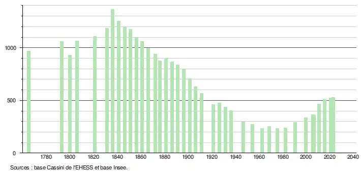 - ↑ Fiches Insee - Populations de référence de la commune pour les années 2006, 2007, 2008, 2009, 2010, 2011, 2012, 2013, 2014, 2015, 2016, 2017, 2018, 2019, 2020, 2021 et 2022.