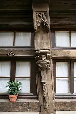 De nombreuses maisons à pans de bois datant des XVe et XVIe siècles sont conservées au vieux village. On peut notamment citer la maison du compagnonnage aux pinacles gothiques et aux chapiteaux sculptés datant du XVe siècle, représentant les bourgeois de la milice, saint Crépin patron des cordonniers ou saint Crépinien patron des savetiers. La maison du receveur percepteur de la gabelle est également remarquable, tout comme la maison jaune, située place de l'hôtel de ville, restaurée en 1996 et devenue la « Maison du Schématisme » (galerie d'exposition).