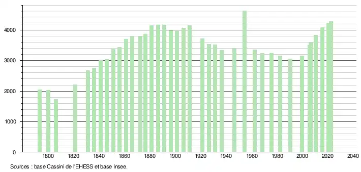 - ↑ Population municipale de référence en vigueur au 1er janvier 2025, millésimée 2022, définie dans les limites territoriales en vigueur au 1er janvier 2024, date de référence statistique : 1er janvier 2022.