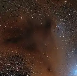 Le nuage est centré sur les étoiles ρ Ophiuchi et Antarès. Sa caractéristique principale, tel qu'observé aux jumelles sous un ciel sombre et clair, est l'absence presque totale d'étoiles de fond : les étoiles de quatrième, cinquième et sixième magnitudes dominent complètement cette partie du ciel, tandis que les étoiles de septième, huitième et neuvième grandeur semblent presque complètement absentes. Les jumelles ne montrent aucune trace de nébulosité, mais l'assombrissement des champs d'étoiles de fond est parfaitement évident. Un télescope à fort grossissement révèle des étoiles à l'aspect nébuleux près de ρ Ophiuchi, tandis que toute la région à l'est de cette dernière continue de paraître remarquablement pauvre en étoiles sombres ; de longues traînées complètement sombres entourées de champs d'étoiles relativement pauvres dénotent la présence de filaments sombres. Les photographies à longue exposition permettent de saisir différents détails du nuage, dont la coloration varie du bleu profond près de ρ Ophiuchi à l'orange autour d'Antarès.