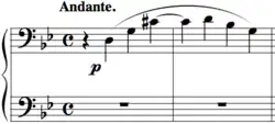 | Les deux premières mesures exposent la quadriade utilisée dans cette pièce |