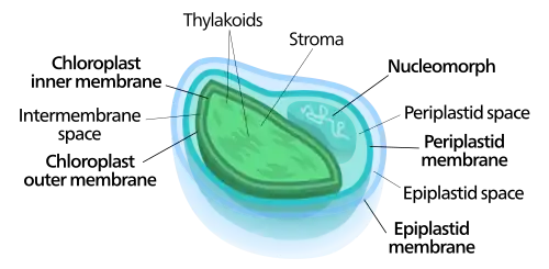 Les endosymbioses successives à l'origine de ces microorganismes confèrent à ces derniers une organisation génomique particulièrement complexe, avec quatre génomes différents :