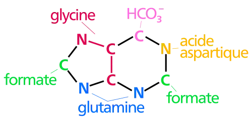 – C4, C5 et N7 sont issus de la glycine