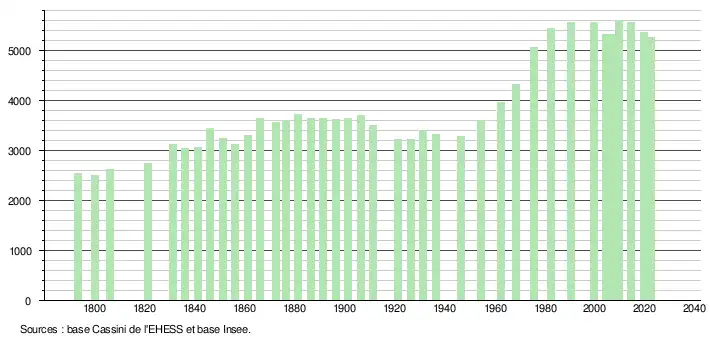 - ↑ Fiches Insee - Populations de référence de la commune pour les années 2006, 2007, 2008, 2009, 2010, 2011, 2012, 2013, 2014, 2015, 2016, 2017, 2018, 2019, 2020, 2021 et 2022.