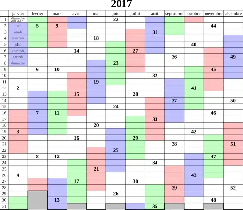 - Les semaines sont les mêmes que dans le calendrier grégorien.