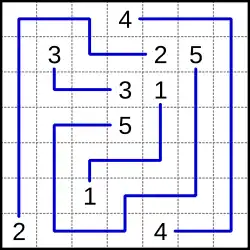 L'objectif est de tracer un chemin entre toutes les paires de mêmes nombres sur une grille. Les chemins ne doivent pas se croiser. Les nombres doivent être aux extrémités des chemins (pas en plein milieu). Généralement, on demande que toutes les cases de la grille soient remplies..