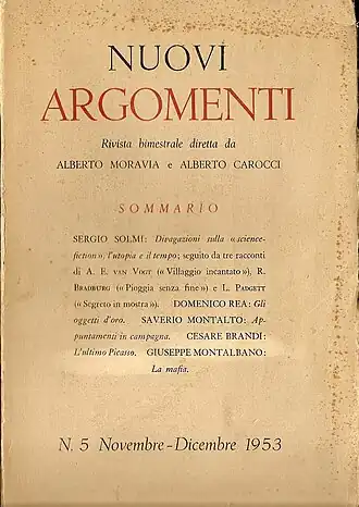 Nuovi Argomenti est une revue italienne fondée en 1953 à Rome par Alberto Carrocci et Alberto Moravia