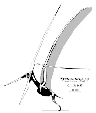 Cependant, les restes d'une autre espèce ont été découverts au Brésil et décrits en 1953 sous le nom de « Nyctosaurus lamegoi » par Llewellyn Ivor Price[3]. Son attribution au genre Nyctosaurus est fortement contestée[4],[5]. Ses fossiles n'ont été trouvés qu'au Kansas près de la rivière Smoky Hill, dans le membre Smoky Hill Chalk de la formation géologique de Niobrara.
