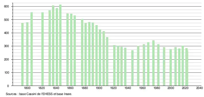 - ↑ Population municipale de référence en vigueur au 1er janvier 2025, millésimée 2022, définie dans les limites territoriales en vigueur au 1er janvier 2024, date de référence statistique : 1er janvier 2022.