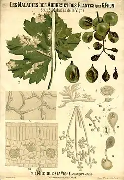 Planche botanique de G. Fron, Les Maladies des Arbres et des plantes : Maladies de la vigne, Bibliothèque Numérique de l'Université d'Artois
