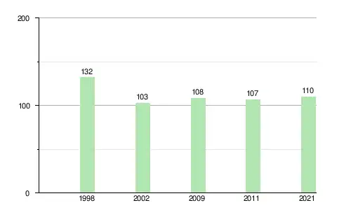 En 2021, le village d' Oćwieka comptait 110 habitants, en diminution de −16,67 % par rapport à 1998[6]. En 2021, 49,1 % des habitants du village d' Oćwieka sont en âge de travailler (entre 18 et 64 ans pour les hommes et 18 et 59 ans pour les femmes). 19,1 % des habitants ont moins de 18 ans et 31,8 % ont l'âge légal de la retraite. Les personnes en âge de travailler représentent 59,5 % de la population de la voïvodie de Couïavie-Poméranie et 59,5 % de la population de Pologne. Ainsi, le taux de dépendance démographique du village d' Oćwieka est supérieur à celui de la voïvodie de Couïavie-Poméranie et supérieur à celui de la Pologne[7].