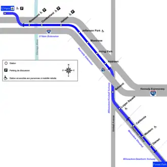 - ↑ « Lines -> O'Hare branch », sur chicago-l.org (consulté le ).