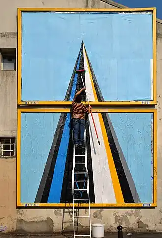 En 2013, le Centre Pompidou l'invite à intervenir sur sa façade dans le cadre de Ex-Situ, ateliers participatifs organisés par le Studio 13/16, avec RERO, Ludo, Vhils, JonOne, YZ, Mark Jenkins[4].