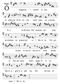 O magnum mysterium est une pièce grégorienne issue des matines de Noël. Bon nombre de compositeurs ont créé des polyphonies de ce chant ; parmi lesquelles les plus connues sont celles de Byrd, Morales, Victoria, Gabrieli, Palestrina, Alessandro Scarlatti, Poulenc, Judith Bingham, Harbison, La Rocca, Mäntyjärvi, Pierre Villette, Lauridsen, Kevin Memley, Busto, Louie, et Miškinis.