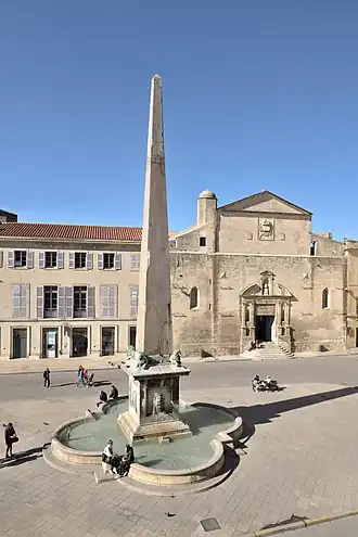 - ↑ M. S., « Arles : l'Obélisque de la place de la République, fin prêt pour la restauration », La Provence, (lire en ligne)