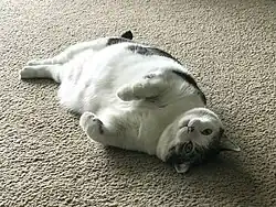 L'obésité chez les animaux de compagnie est généralement due à un apport alimentaire excessif ou à un manque d'exercice physique[9]. Les propriétaires peuvent considérer la nourriture comme un moyen de récompenser leurs animaux de compagnie, ce qui contribue à la suralimentation[10]. Les animaux domestiques confinés dans une maison ou un terrain réduit, qui ne font pas d'exercice régulièrement, sont plus sujets à l'obésité[10].