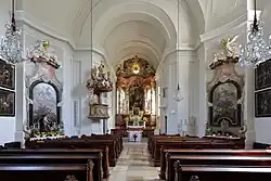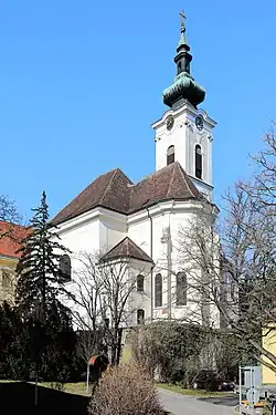 - Eglise baroque d'Ober-St.-Veit sur la Wolfrathplatz, bâtiment primitif cité en 1365, reconstruit en 1433, détruit en 1529 et 1683, chœur gothique tardif, nef datant de 1742