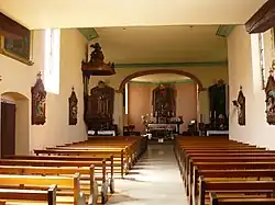 Surmontant la porte de la sacristie, un tableau du XVIIIe siècle, récemment restauré, représente Saint Léon, seul pape alsacien. Les vitraux peints représentent la Nativité, le baptême de Jésus ainsi que la sainte Cène. Dans le côté sud du transept, l'autel de la Vierge est surmonté d'un tableau de l'Immaculée Conception dont le cadre est orné de l'Arche d'alliance.
