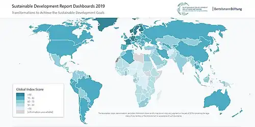 - ↑ SDSN : Rapport annuel 2019 sur l'avancement des Objectifs de développement durable (ODD) dans chacun des 193 Etats membres des Nations Unies: passer d'urgence à l'action pour les ODD !