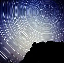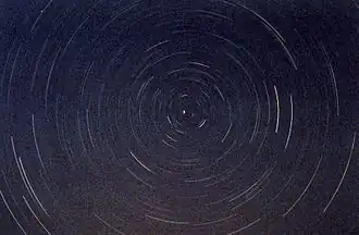 - une autre méthode existe et nécessite un temps de post-traitement informatique. À l'aide d'un intervallomètre, l'appareil photo prend en continu (par exemple pendant 1 heure) des photos à long temps d'exposition (par exemple 30 secondes). Les photos prises, souvent plusieurs centaines, sont ensuite fusionnées à l'aide d'un logiciel de traitement d'image afin d'obtenir l'effet « circumpolaire ». Il existe des programmes spécifique comme StarMax et StarStax. Si avec cette technique le trépied bouge ou que quelque chose vient ponctuellement perturber la vue, il suffit de remettre le trépied en place et il est possible d'éliminer la ou les images défectueuses. Il est en outre possible de redéfinir le début et la fin de la séquence, voire de monter toutes les photos prises en une vidéo time-lapse.