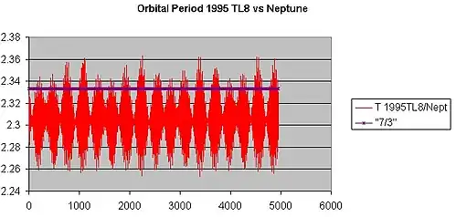 Emel’yanenko et Kiseleva ont aussi montré que (48639) 1995 TL8 a moins de 1 % de probabilité d'être en résonance 7:3 avec Neptune, mais son orbite est pourtant proche d'une résonance.