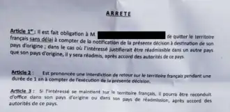 - ↑ « Que faire après une obligation de quitter le territoire français ou une interdiction d’y revenir ? : 3e édition ⋅ GISTI », sur www.gisti.org, 2019 (obsolète, modifié par la loi 2024, voir le document du syndicat de la juridiction administrative 2024) (consulté le ).