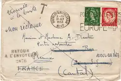 Les cachets de retour à l'envoyeur servent à indiquer que le destinataire n'a pu être joint et que le courrier doit être retourné à l'envoyeur. Ils sont utilisés par les bureaux du lieu de destination.