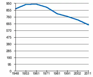 | 875 | 935 | 941 | 898 | 808 | 766 | 720[2] | 651[1] |